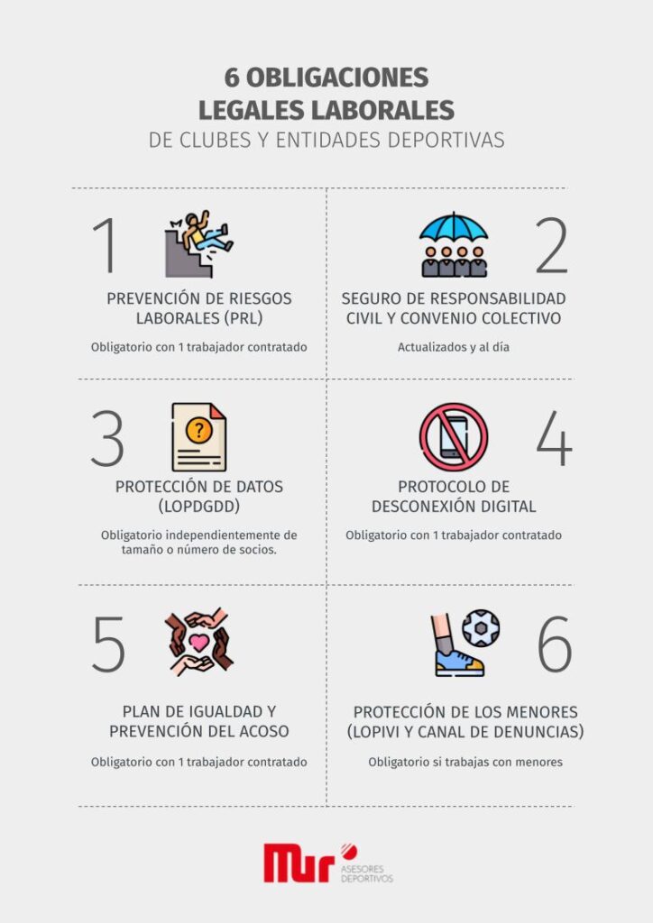 - Igualdad de trato y oportunidades (obligatorio plan de igualdad en clubes con más de 50 empleados).
